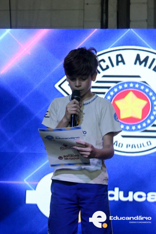 Aconteceu (02/12) na quadra da escola a cerimônia de encerramento dos programas PROERD e Bombeiro na Escola, com a participação das turmas do 4º, 5º e 8º ano. A solenidade contou com a presença de: Cap. Fábio Leite – Comandante da 2ª Cia do 10º BPMM.
